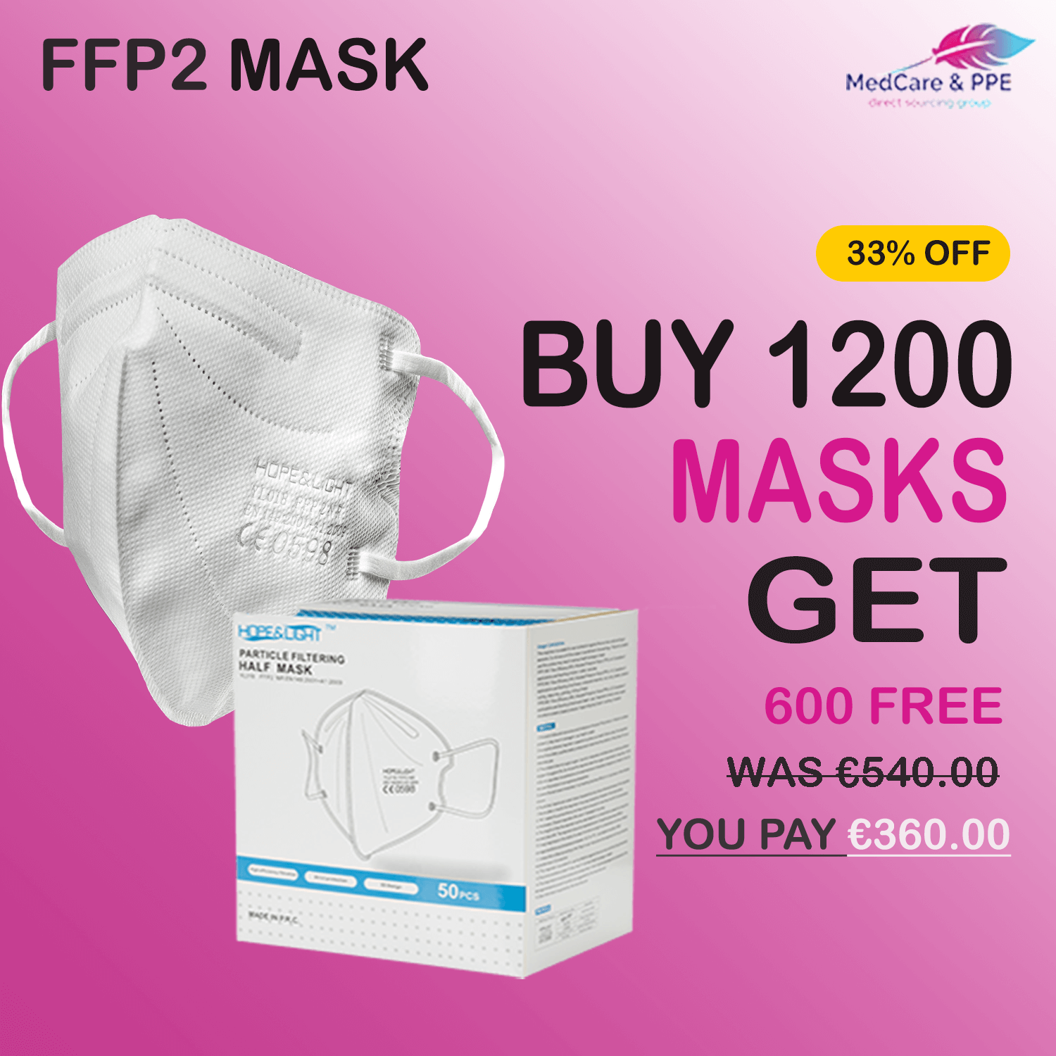 Get 33% OFF in Buy 1200 FFP2 Mask & Get 600 Free
